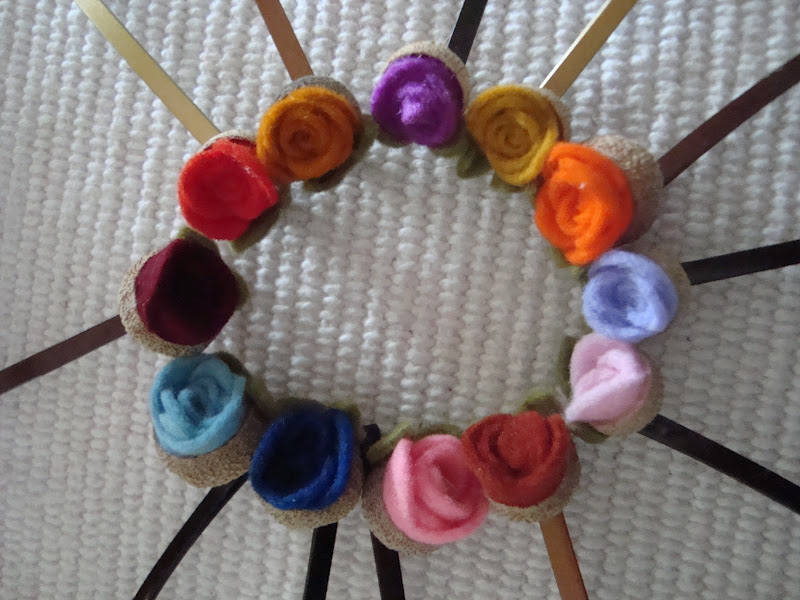 Pues eso, que como hay crisis y no se puede tirar nada le he dicho a mi "madre del alma y de mi corazón" que aprovechara los restos de lana que habían sobrado de hacer los gorritos para hacer unos pequeños broches en forma de flor.